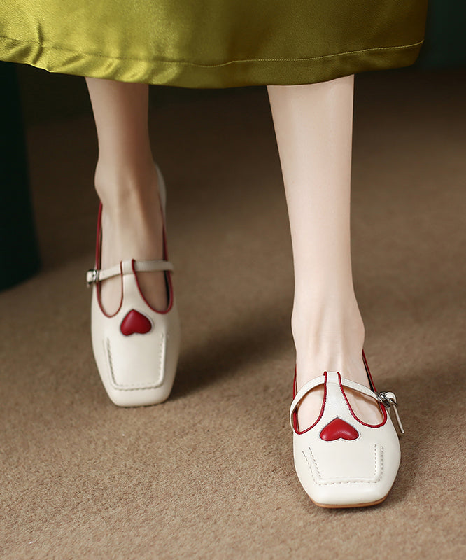 Beige Heart Cowhide Leather Flat Feet Shoes Casual Versatile
