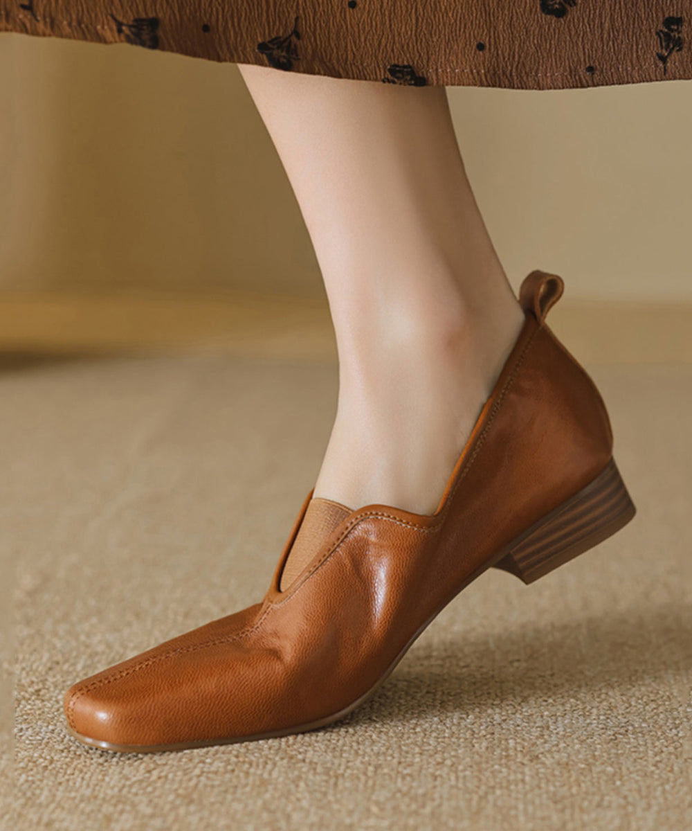 Elegant Comfy Caramel Sheepskin Splicing Flat Feet Shoes