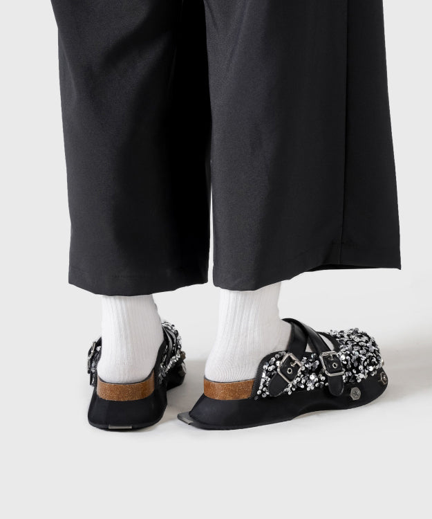 Fashion Platform Slide Sandals Black Cowhide Leather Sequins