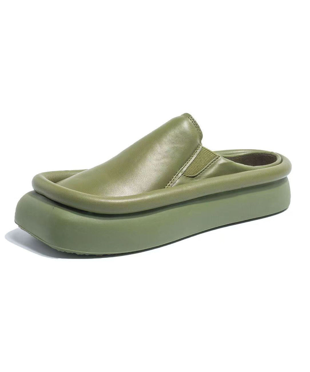 Green Comfy Splicing Faux Leather Platform Slide Sandals