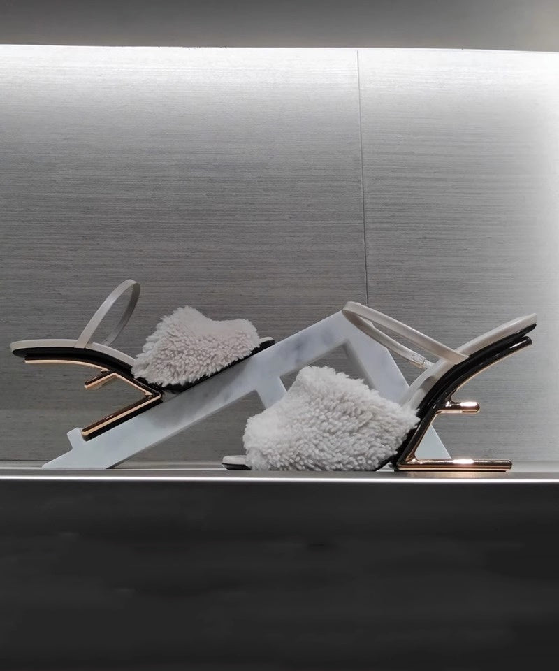 Novelty Sexy Apricot Mink Hair Slide Sandals Alien Heel
