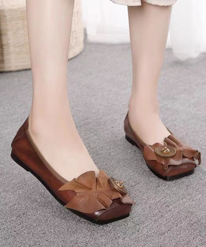 Red Flat Shoes For Women Cowhide Leather Boho Splicing Floral